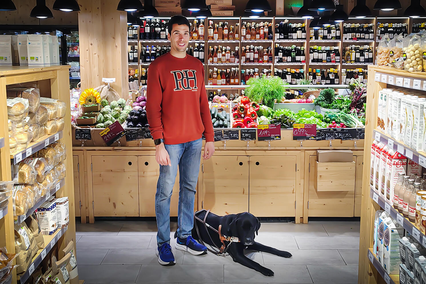 Gràcies a cans com en Cayden, les persones amb visibilitat reduïda recuperen una mobilitat lliure i autònoma, permetent-los integrar-se plenament en el dia a dia, com és anar a triar el millor producte fresc de la nostra terra.