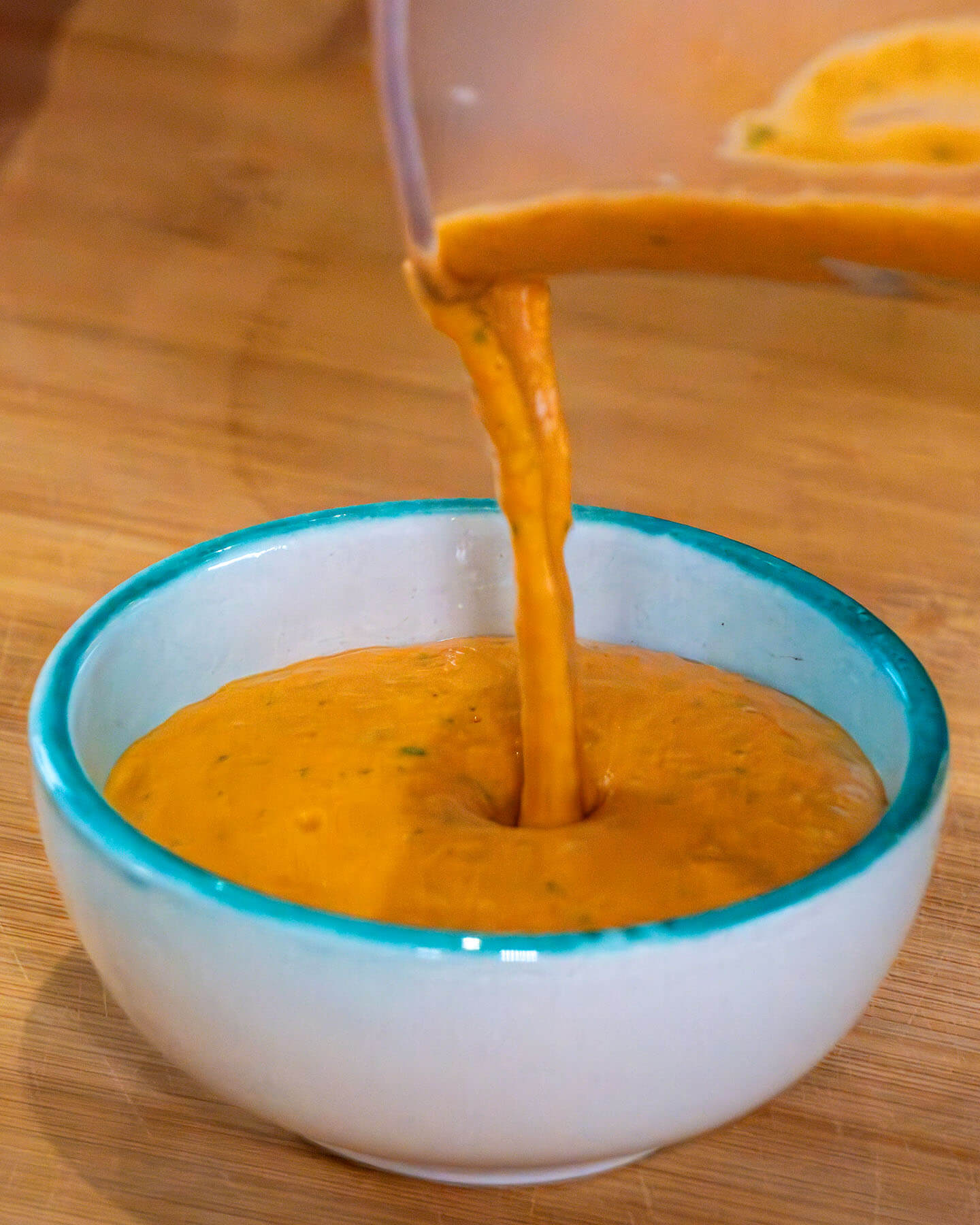 4. Triturar la salsa de tomàtiga xerri i alfabeguera